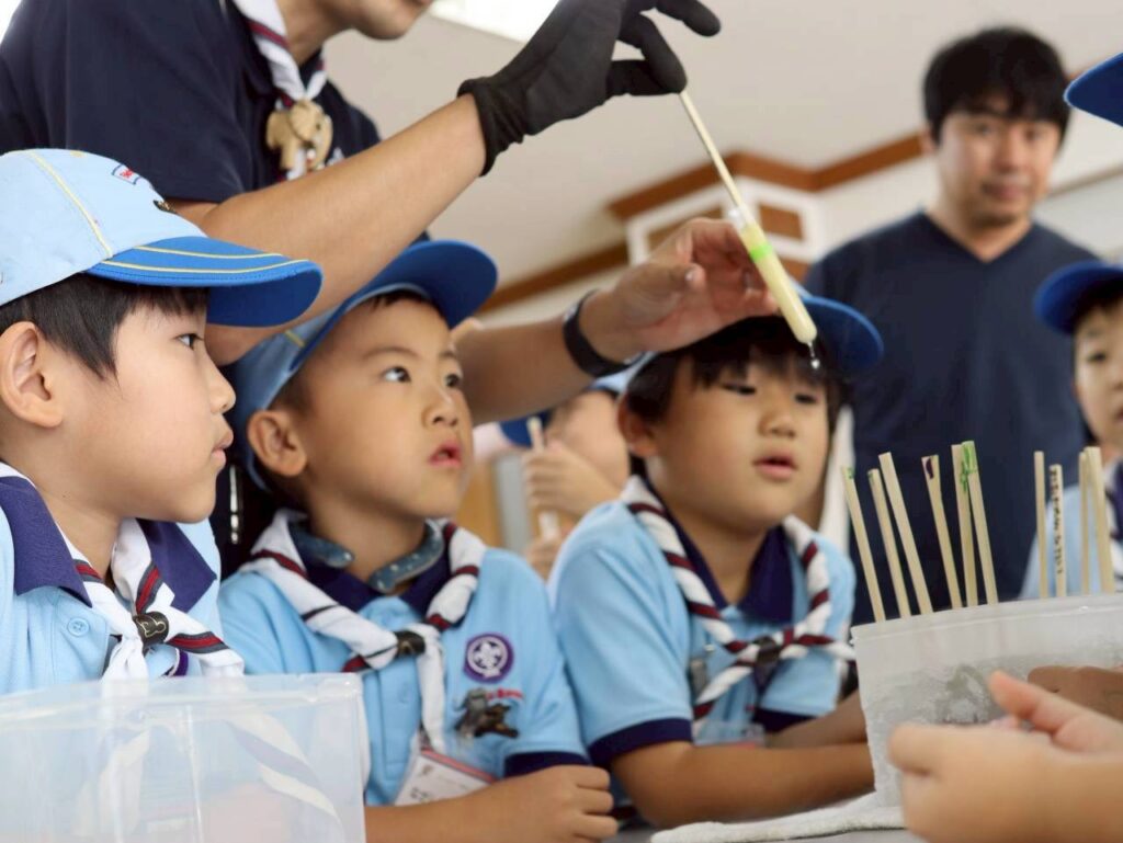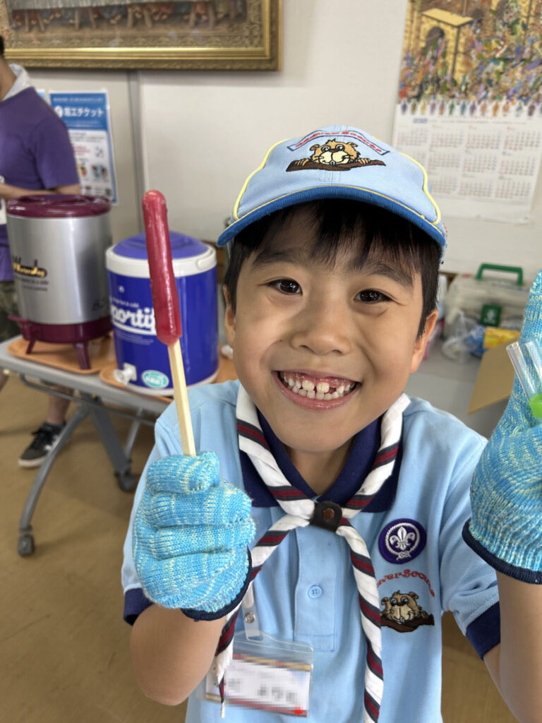 カブ隊でお昼ご飯を用意してくれている間、ドライアイスでアイスキャンディーを作りました。