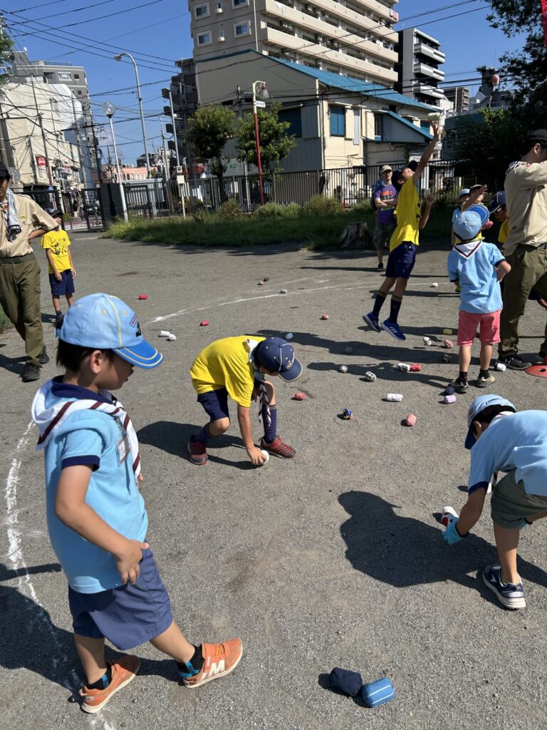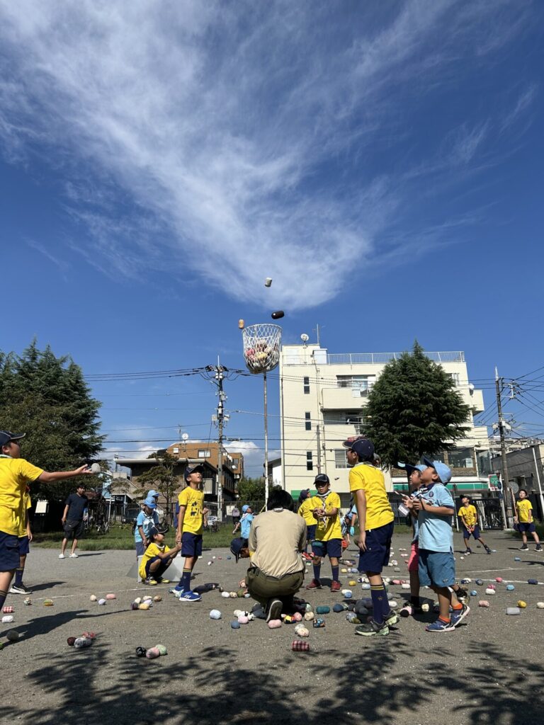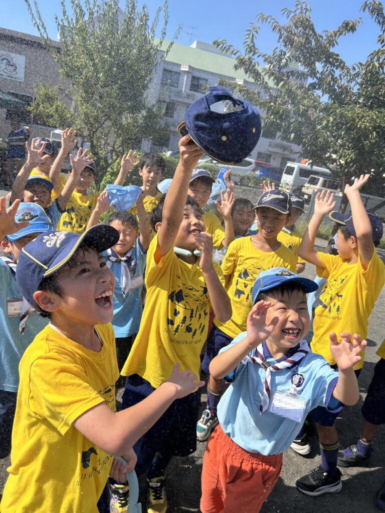 お昼のあとはカブ隊と合同チームで玉入れ競争をしました。途中で水浴びを挟みました。