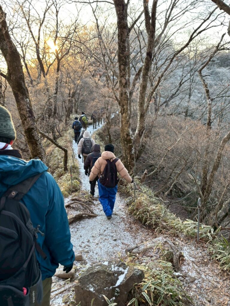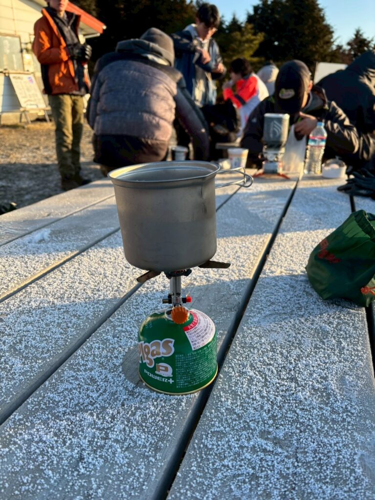 とても寒いですが、登り始めると暑くて汗をかきます。