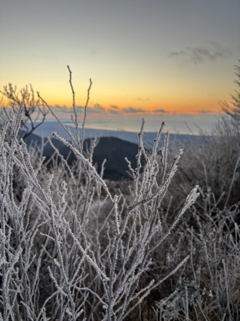 霧氷で凍った枝がとても幻想的で綺麗です。