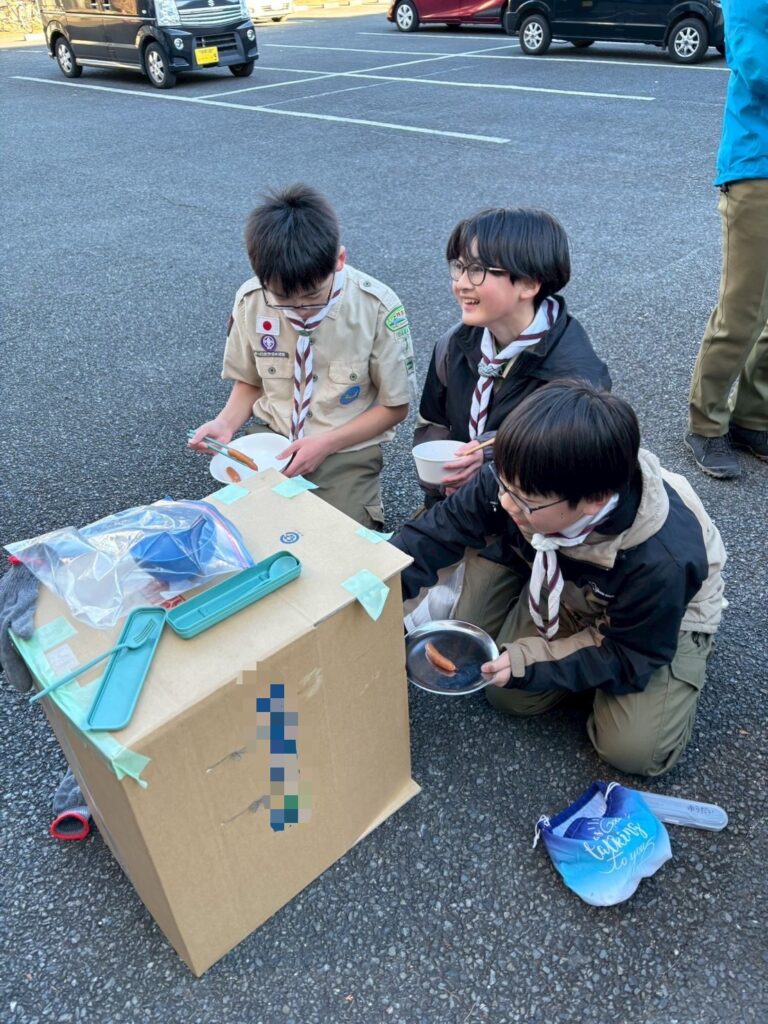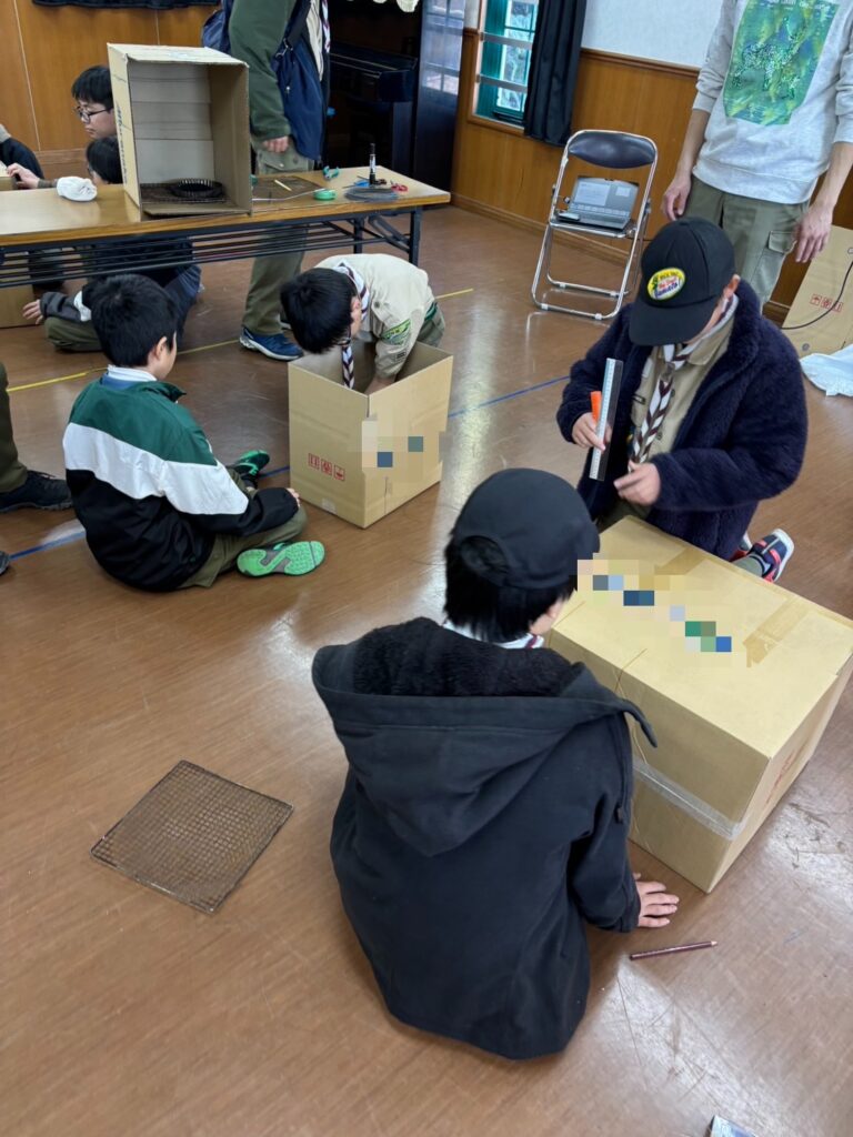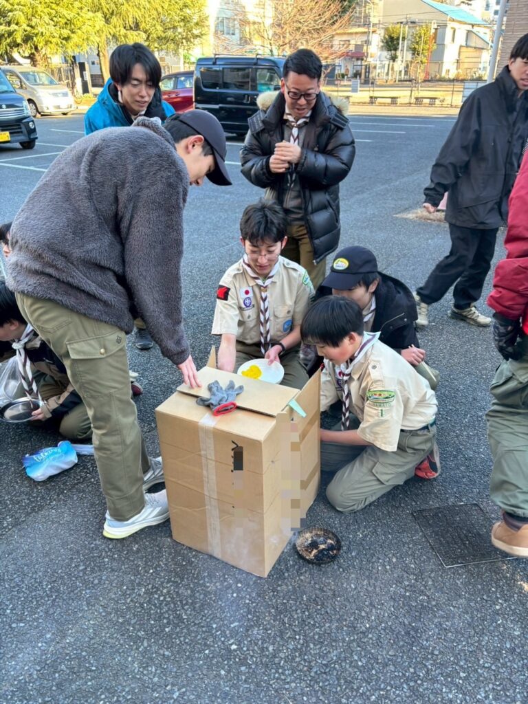 2026.01.18 ボーイ隊 燻製 ボーイ隊 Tweet この記事のタイトルとURLをコピーする 2026年1月12日 1月隊集会 本日の活動は、旗上げ式の後に燻製です。 先ずは燻製のお勉強(?)と燻製器を段ボールで作りました。 肝心の食材はというと…スカウトたちが燻製したいものを準備しました。 さてさて、どうなることでしょう(^^) 1時間ほど燻製して、オープン!(めっちゃモクモク) 短い時間でしたが、しっかりと風味が付いていました。 今度はもっとしっかり燻製としたい!と思う活動となりました。 Tweet この記事のタイトルとURLをコピーする 団行事 旗揚式 前の記事 ジャンボリー 結隊式 次の記事